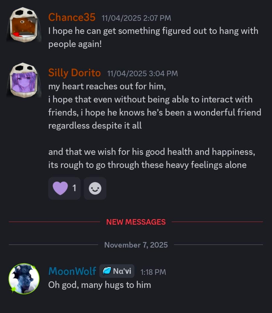 Chance35, Silly Dorito and MoonMoon Thank you for your well wishes and I thank (Dorito and Moon) for being my friends for what... a decade?